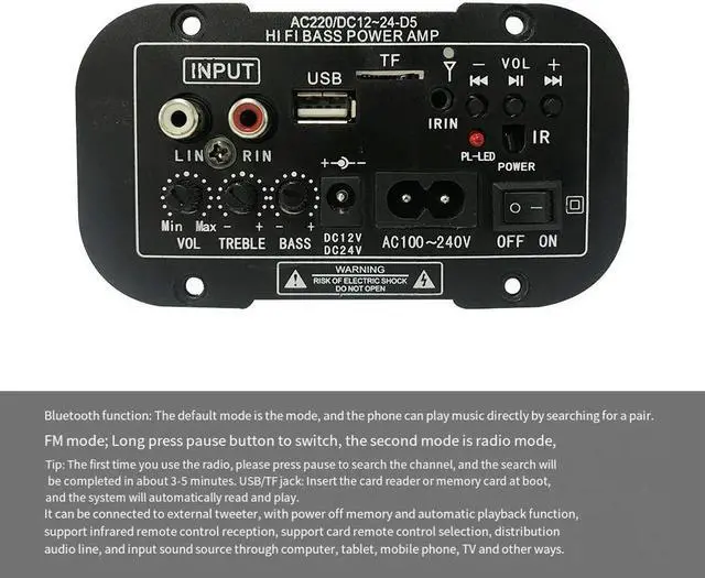 • 12V 24V Bluetooth Amplifier Board HIFI Bass Amplifier Board FM Subwoofer 30-120W for 10Inch Subwoofer Speaker(US Plug)