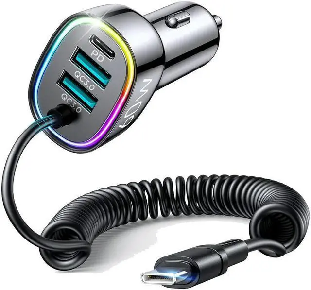 • USB C Car Charger,60W 4 Port Fast Car Charger Multi Port Lighter Adapter for Galaxy S22/21/10+Android
