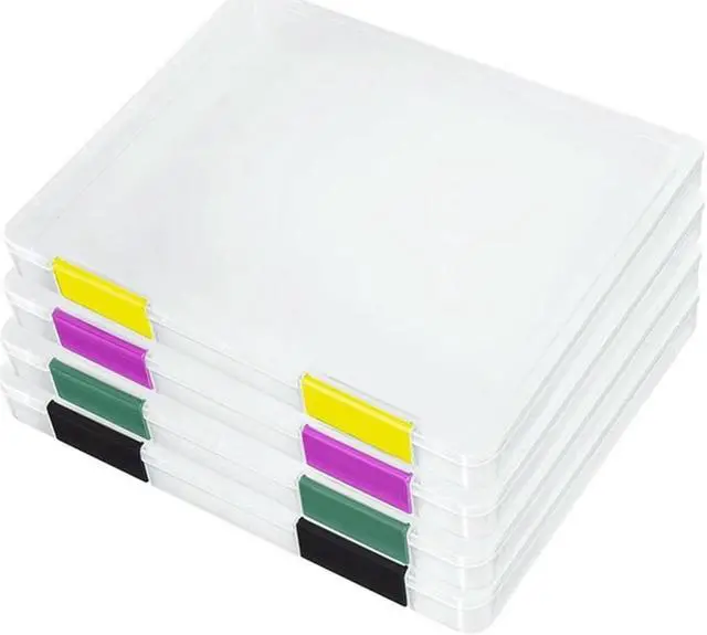 • 4PCS A4 File Portable Project Case,Portable A4 File Box Plastic Scrapbook Paper Storage Box For 8.5X11inch Letter Paper Durable