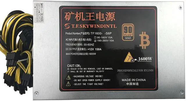• T.F.SKYWINDINTL 1600W PC Power Supply PSU Mining S9 S7 A8 A7 A6 A3 E9 T9 V9 D3 L3+ Antminer S9 Apw3 6 Pin Ethereum Coin Bitcoin