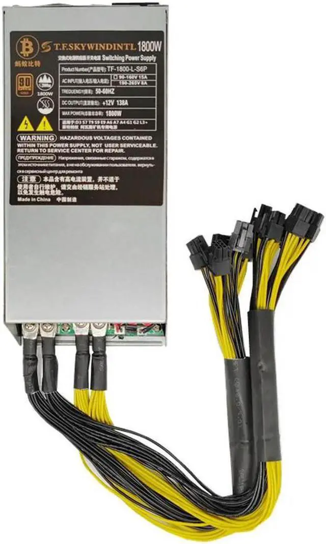 • 1800W PC Power Supply for ETH Mining Machine PSU 180-240V ATX Input 10x6Pin Miner 90% Efficiency Device For BTC Mining Server