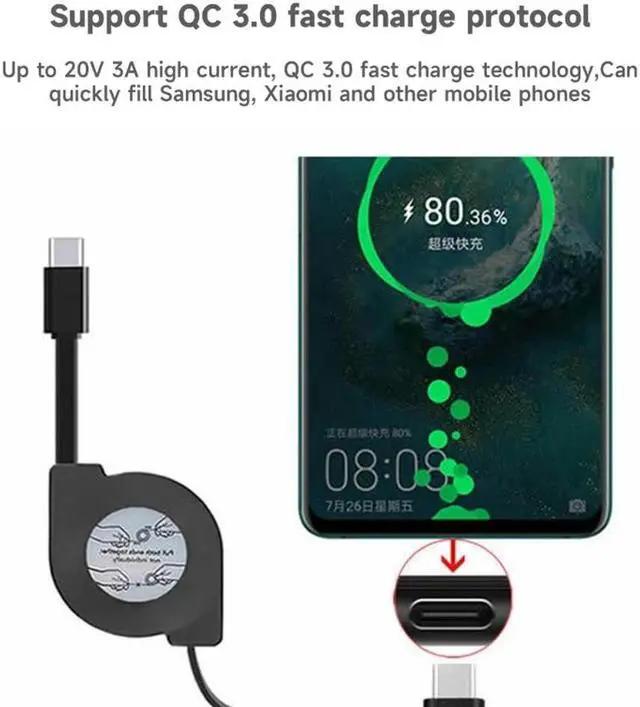 ruth's sister 2 in 1 60W Car Adapters Telescopic Cord USB C Fast Car