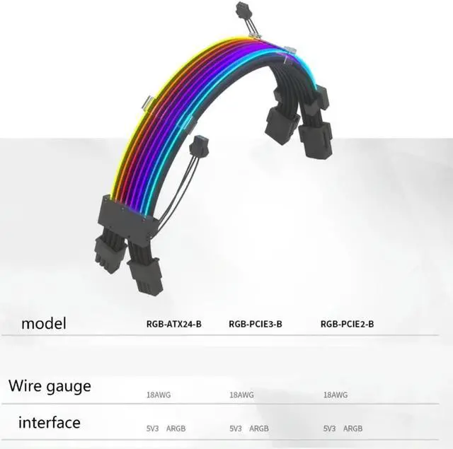 • Power Supply Sleeved Cable Customization Double 8Pin ATX ARGB Cable Extension 5V 3Pin Synchronized Sleeved Cable Power Supply Sleeved Cable Customization Double 8Pin ATX ARGB Cable Extension 5V 3Pin Synchronized Sleeved Cable