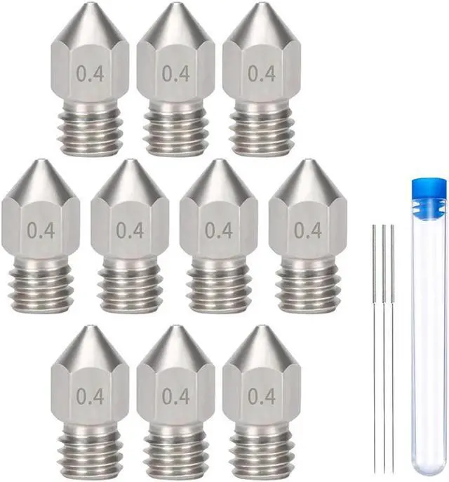 • 10 Pcs Mk8 0.4 Mm/1.75 Mm 3D Printer Nozzles,Hardened Stainless Steel Extruder Nozzles With 3 Pcs Nozzle Cleaning Needle