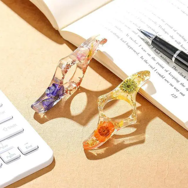 Ruth's sister 2Pcs Dried Flower Resin Thumb Book Holder-Handmade Resin Holders Light Weight Book Opener Bookmarks (Fresh Style)