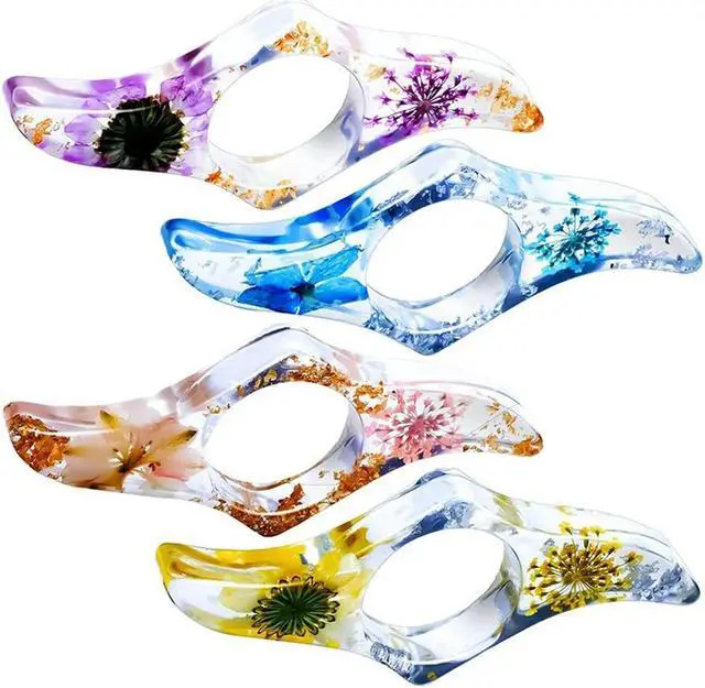 • 4 Pcs Dried Flower Resin Thumb Book Holder-Handmade Resin Holders Light Weight Book Opener Bookmarks (Wave Style)