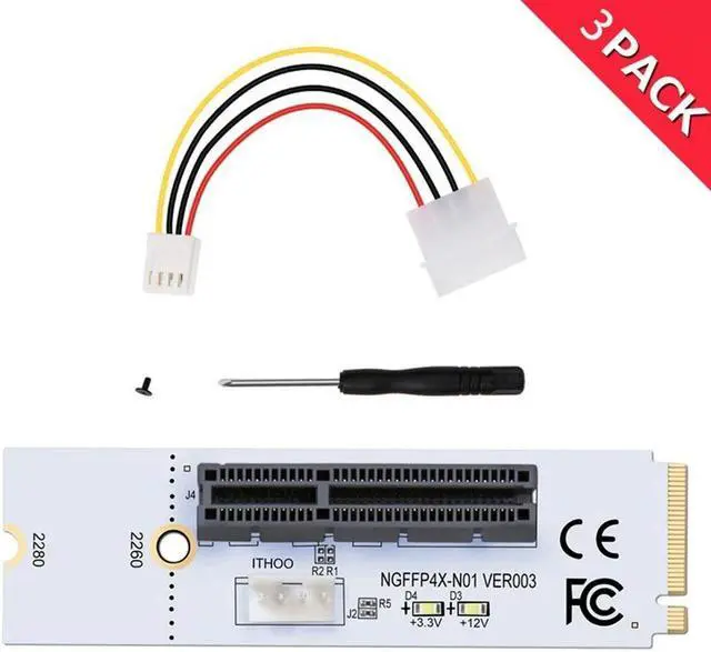 • NGFF M.2 To PCI-E 4X Riser Card M2 Key M To Pcie X4 Adapter With LED Voltage Indicator For Bitcoin Miner Mining(3-Pack)