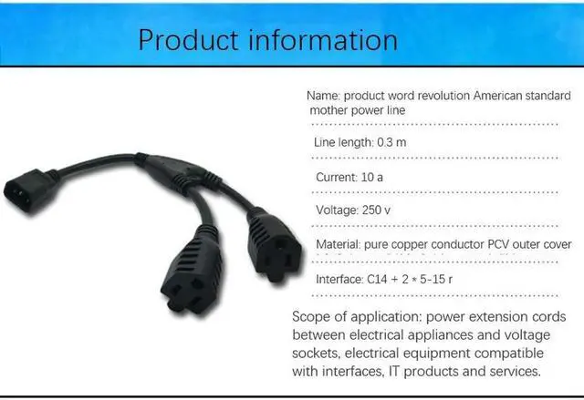 • Power Extension Cord, C14 To 2X5-15R American Power Conversion Cord For Laptops, Electric Kettles, Etc(0.3M)
