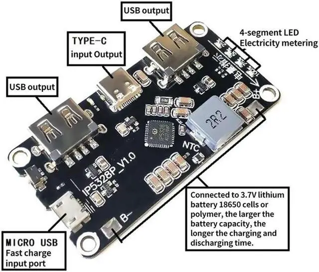 Ruth's sister IP5328P Charging Po Bidirectional Fast Charge Switch Module Of The Mobile Motherboard Power Type-C 3.7V Boost 5V9V12V