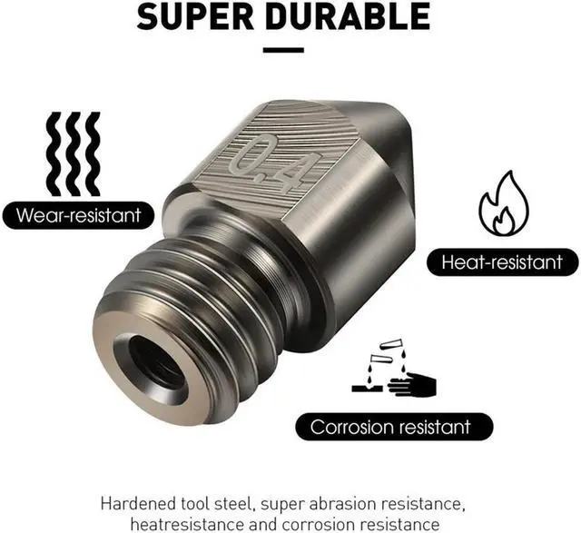 • 10PCS 3D Printer Extruder Nozzle Mk8 Hardened Steel Nozzle 0.4Mm Nozzle Full Metal Hot End For Ender3 3D Printers