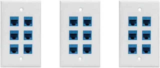 • 3X Cat 6 Ethernet Wall Plate 6 Port,Ethernet Wall Plate Female-Female Removable Compatible With Cat7/6/6E/5/5E