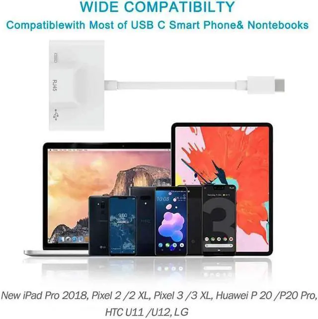 • 3 In 1 Charger Adapter For Type-C To Lan 100Mbps Ethernet Rj45 Adapter Otg Usb 3.0 Camera Reader For Type-C Smart Phone