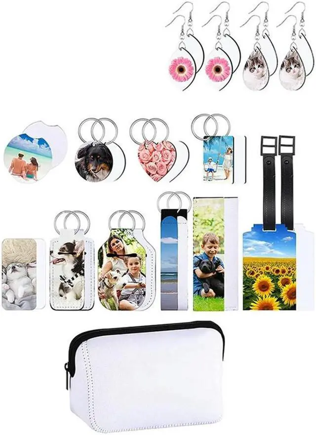 Ruth's sister 29Pcs Sublimation Blanks Products Set Including Makeup Bag Cosmetic Pouch, Earrings, Keychain,Drink Cup Coasters For DIY