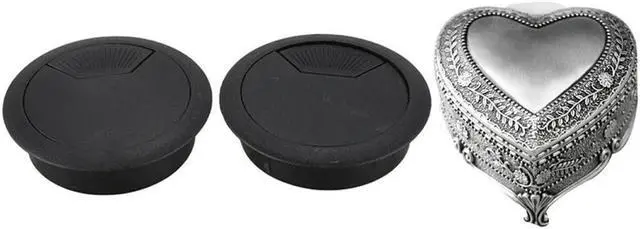 • 2 Pcs 50Mm Diameter Wire Cord Grommets Hole Cover Black & 1Pcs Alloy Heart Shape Music Box Metal Clockwork