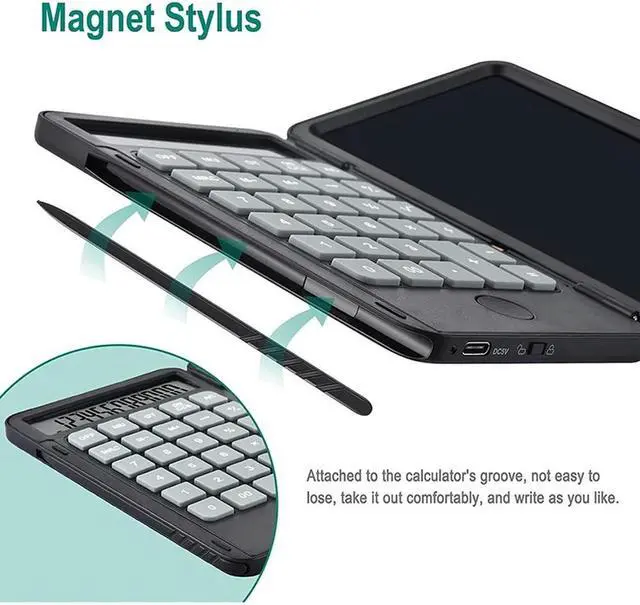 • Calculator,6.5-Inch Writing Tablet And Pen, Rechargeable Multifunctional Foldable Portable Silent Calculator Notepad