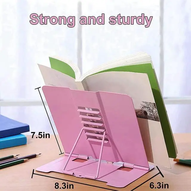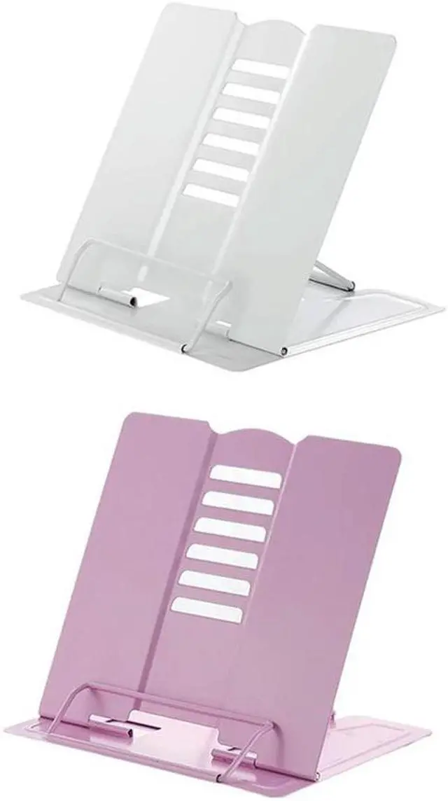 • 2 Pcs Desk Book Stand Metal Reading Rest Book Holder Document Holder Portable Sturdy Lightweight, White & Pink