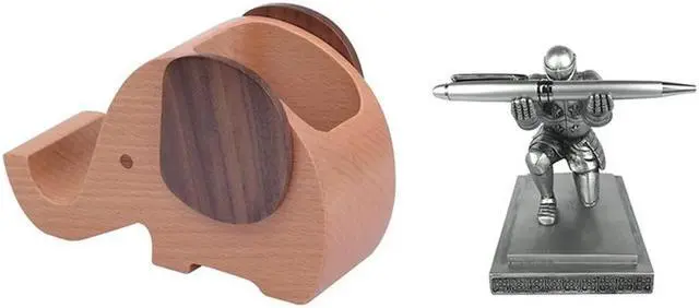 • 1 Pcs Wooden Elephant Cell Phone Holder & 1 Pcs Creative Desktop Storage Soldier Knight Pen Stand Holder