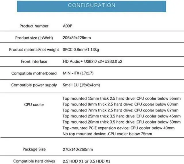 Ruth's sister A09P Black Mini Itx Case Desktop Mini Itx Case Htpc Chassis Game Computer Can Stand Or Lie Down For Small 1U Power Supply