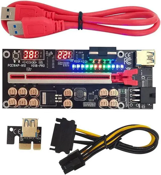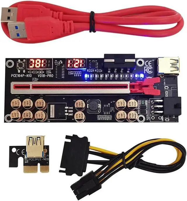 • 8X VER018 PRO PCI-E Riser Card USB 3.0 Cable 018 PLUS PCI Express 1X To 16X Extender Pcie Adapter For BTC Mining(Red)