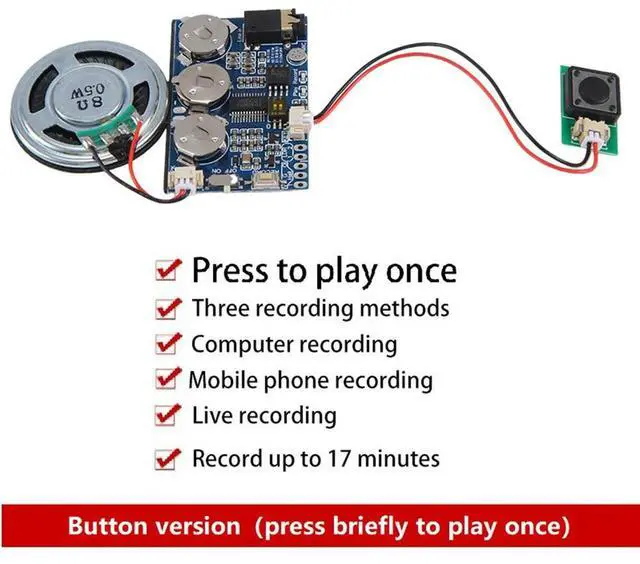 • 17 Minutes Sound Voice Audio Music Recorder Board Chip Programmable Music Module for Greeting Card Self-Made Gift-AB01