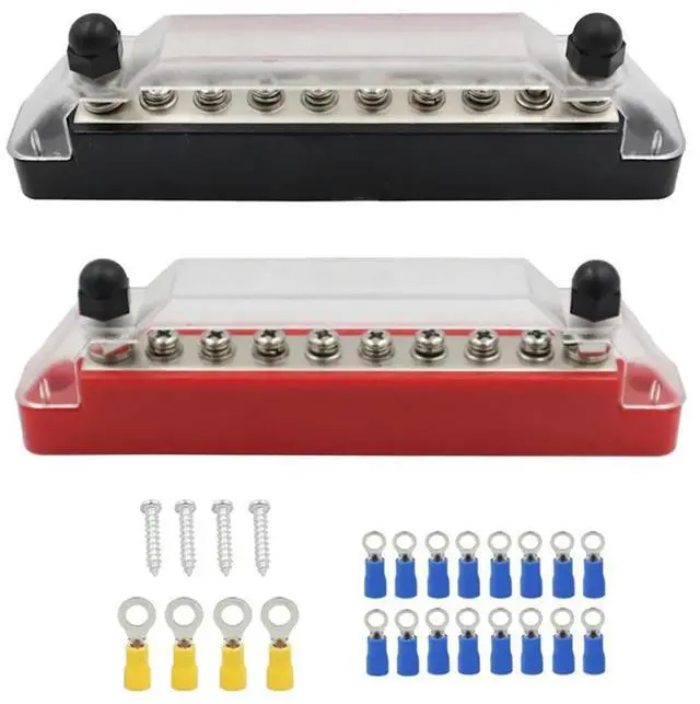 • 10 Way Screw Terminal Blocks 150A Busbar with Terminals for Vehicle and Boat Wiring Rebuilds Supports Up to 48V-AB01