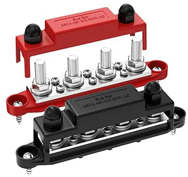 250A 12V Bus Bar Power Distribution Block Car Audio 12 Volt DC Busbar 4 x 3/8Inch Posts 6 x 8 Screws-AB01