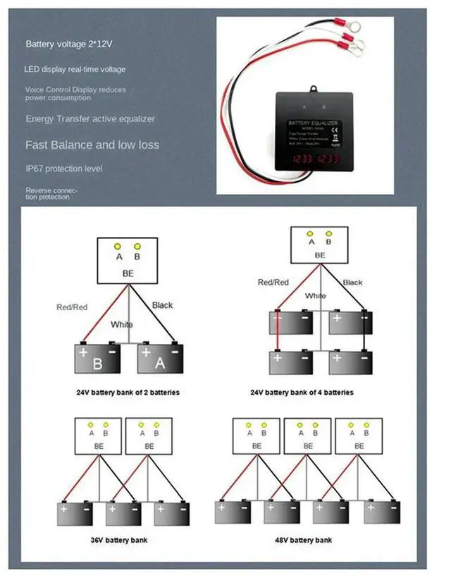 • 1 PCS LED Display Balancer HA12L Black For 24V Balancer 4S Active Voltage Lead Acid Li-Ion Lifepo4