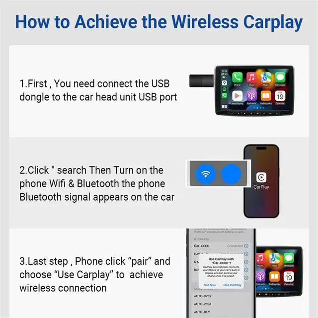 • Wireless CarPlay Adapter Convert Wired to Wireless Carplay USB Bluetooth WiFi Fast Connect Plug and Play for-AB01