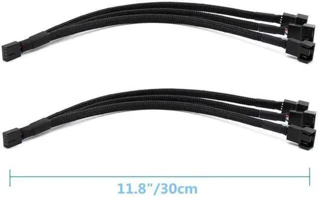 PWM Fan Splitter Adapter Cable Sleeved Braided Y Splitter Computer PC 4 Pin Fan Extension Power Cable 1 to 3 Converter for Computer ATX Case 4-Pin/3-Pin Cooling Fan Cable (11.8" -2 Pack)