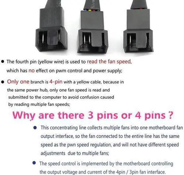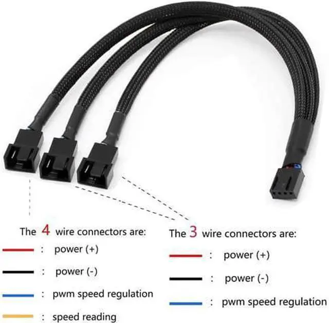 • COMPATIBLE- This cable is compatible with all 4 pin and 3 pin case fans !!!4Pin 1 to 3 Ways PWM Fan Splitter Cable, to realize 3 fans powered by 1 interface with speed regulation.