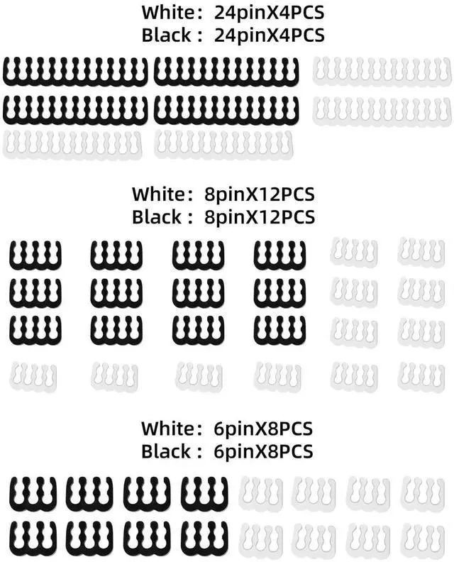 3.Contents: 3 different type of cable combs and 48-pack(16 x 6P,24 x 8P,8 x 24P).
