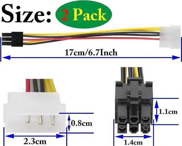 4Pin Molex Male to 6Pin PCI-E Male Graphics Card Power Cord Adapter,Molex to 6Pin,4-pin Molex to 6-pin PCI-E Express Cable Graphics Adapter Conversion Cable.(17cm/2Pack)