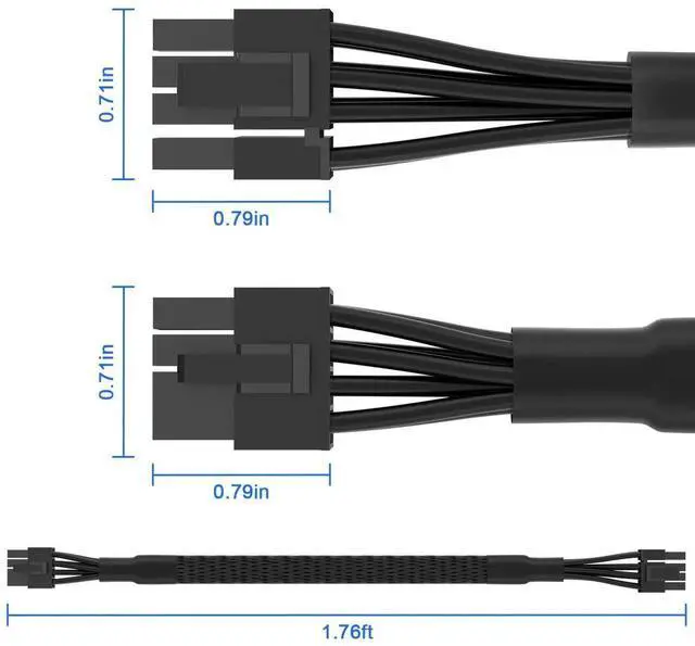 [Parameter]This E VGA Power Supply Cables is 1.97ft/60cm long, built with 18AWG tinned copper cores and braided nylon sleeving for superior durability.