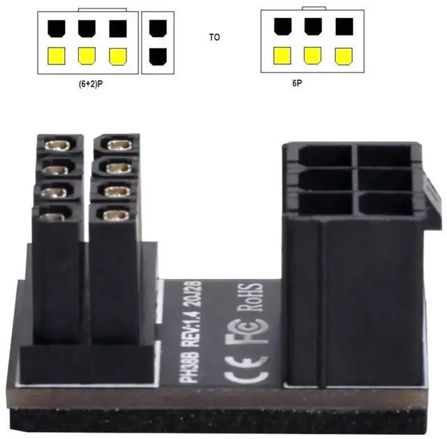 ATX 6Pin Female to 8pin Male 180 Degree AngledPower Adapter for Desktops Graphics Card