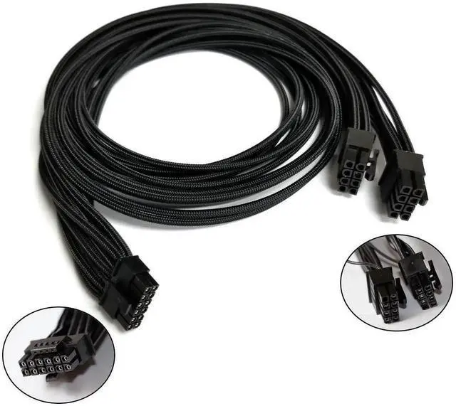 2x Pcie 8 Pin Male to 16 Pin Male power sleeved cable is to provide a convenient solution for adding high-end graphics card to your existing power supply; Support: Seasonic PSUs:(X-1050XM2/X-1250XM2) (SS-660/760/860XP2 series) (X-Series - X-650 KM3/X-750 KM3/X-850 KM3) (SS-1050/1200XP3) (Seasonic_Snow_Silent 750W/1050W) (M12II Evo series 520/620/650/750/850) (Seasonic FOCUS+ series) SSR-1000TR/SSR-1000PD/SSR-1200PD, SSR-600TL;A SUS ROG THOG 1200P,Phanteka Revolt series. EVGA PSUs: EVGA 750GQ/850GQ/1000GQ 1600T2/1000T2/850T2/750T2 1600P2/1200P2/1000P2/850P2/750P2/650P2 1600G2/1300G2/1000G2/850G2/750G2/650G2/550G2 1000G3/850G3/750G3/650G3/550G3 NEX650G/750G 650GS/550GS(Doesn't work with 1000PS/850GS/1050GS), some types of Thermaltake & COUGAR PSU with 8 pin PCIe port evga. Spec: Length(including connectors): 24-inch(60cm) Connectors: 2x Pcie 8 pin male, 1x 16 pin male Gauge: 1007-18AWG(standard tin-coating copper wire) Note: 1. All of 2 pcs 8 pin ends must be connected when to use. 2. Do not work with 12 pin GPU like GeForce RTX 3090 Series GPU. Only support 12+4pin GPU. 3. Do not connect this cable on the power-on status, it will damage your components; 4. This cable was only designed for graphics vedio cards, it does not work with motherboards. 5. This cable was only designed for the brand and model as listed in the 2nd and 3rd Point. Using the cable with unsupported GPUs or PSUs will definitely damage the PSUs, graphics cards or other devices. Please do not use with any makes or models not listed in our compatibility list;