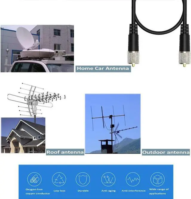 This CB coax cable is used for CB ham radio, antenna analyzer, tuner, switch, monitor, dummy load and SWR meter, it is also great for Jeep Wrangler CB installation.
