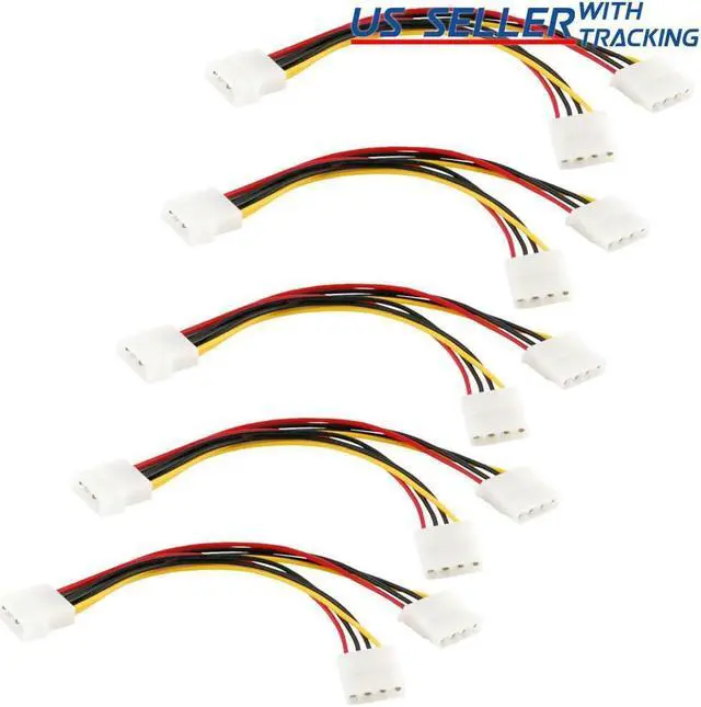 (5-pack) 4-pin Molex Male to 2x Female Power Splitter Cable Extension Adapter 5X