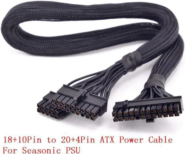 PSU Modular 18+10pin to 24Pin 20+4Pin ATX Power Supply Cable with Net for Seasonic KM3 Series X-750 X-850 SS-1050XP3 SS-1200XP3 M12II Evo Series 520 620 650 750 850 Snow Silent 750 1050 FOCUS PLUS Gold SSR-850FX/750FX/650FX/550FX FOCUS PLUS Platinum