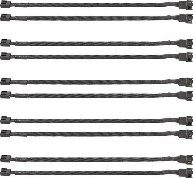 PWM Fan Extension Cable - 10.5 inch PC Fan Extension Cable, Durable, Black Braided Nylon Case Fan Extension Cable (10 Pack)