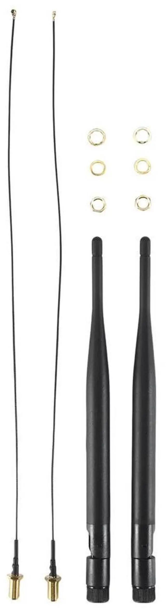 • For 2 x 6dBi 2.4GHz 5GHz Dual Band WiFi RP-SMA Antenna + 2 x 35cm U.fl IPEX Cable