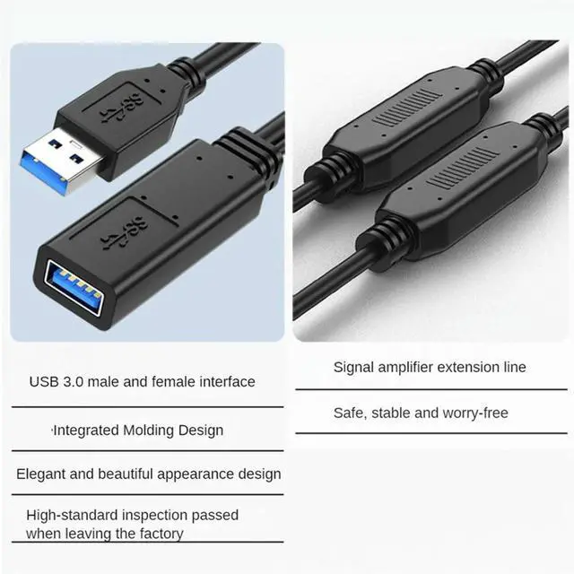 • For USB 3.0 Extension Cable Male to Female Active Extension Cable USB Repeater with Signal Booster 49.2 Feet/15 Meter