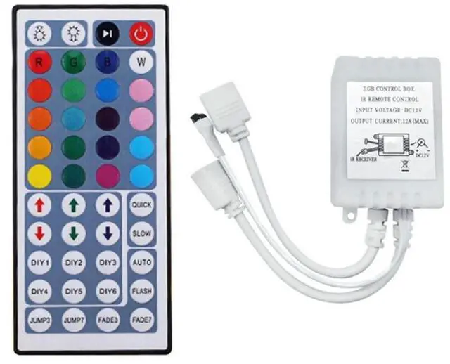 • For DC12V RGB LED Controller+44 Keys Remote Control RGB Control Box IR Light Strip Controller for 2835 5050 RGB Light Strip
