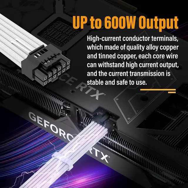 The cable material is made of 16AWG tinned copper, and the terminal is made of alloy copper, providing support for a maximum output of 600W, stable performance and safety under high-load use, no frame drop , no screen flickering, and continuous power supply.