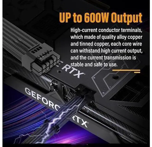 The cable material is made of 16AWG tinned copper, and the terminal is made of alloy copper, providing support for a maximum output of 600W, stable performance and safety under high-load use, no frame drop , no screen flickering, and continuous power supply.