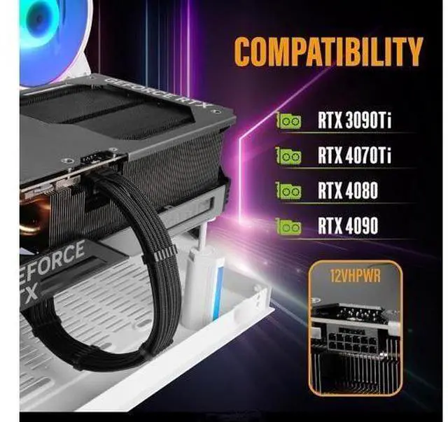 Supports RTX 50 series GPUs (except RTX 5090, not recommended). Dedicated design for the specs of 12VHPWR PCIe 5.0 Graphics Cards, compatible with RTX 3090Ti / 4090 / 4080 / other RTX 40 series GPUs. Easily connects using the original 1-to-4 power adapter or PCIe 5.0 PSU power cable to ensure stable and reliable performance