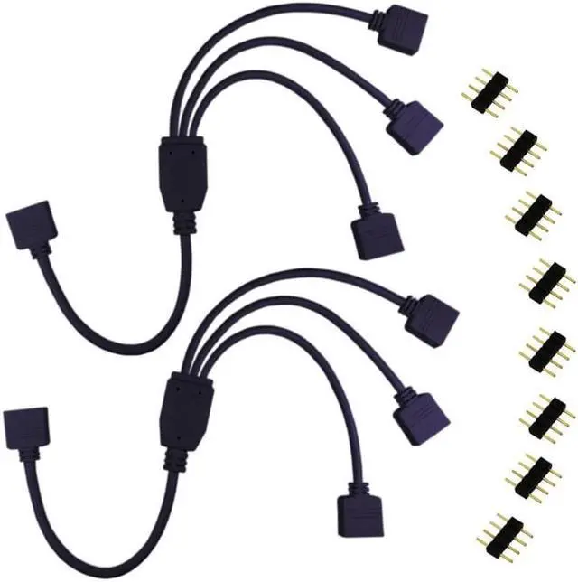 PackageIncludes: 2x RGB splitter cable 1 to 3 ports (Black) 8x 4-pin male to male plugs