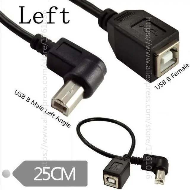 • Right Angled 90 Degree USB Printer Scanner Cable 25cm USB 2.0 B Male to B Female Printer Scanner Extension Cable (0.25m)