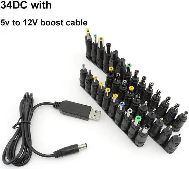 DC 5V to DC 9V 8.4 v 12.6 v 12V Step UP Module USB power boost Cable line USB Converter with 34pcs DC female charger Adapter Plug