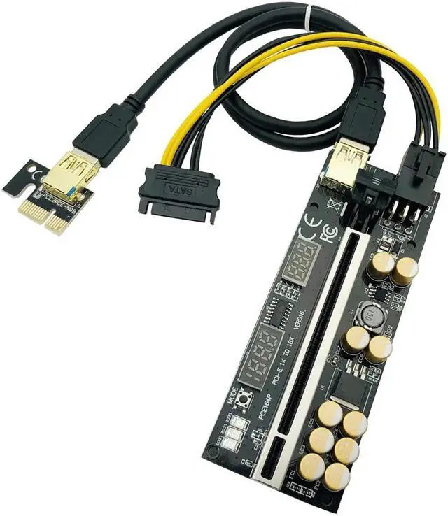 6Pc PCIE Riser for Video Card USB 3.0 016 Riser PCI Express X16 Extender GPU Riser Card 6Pin Power Voltage Temperature Monitoring