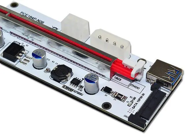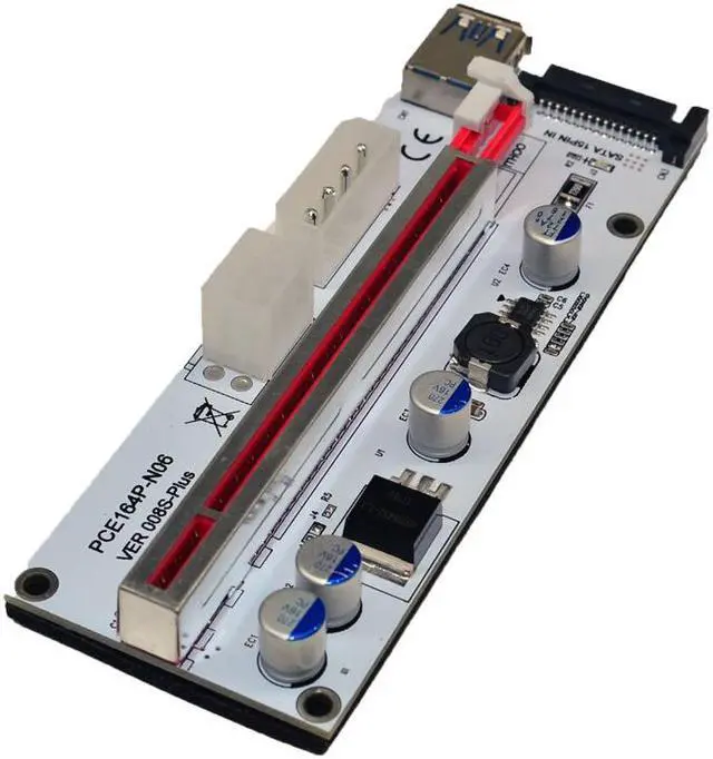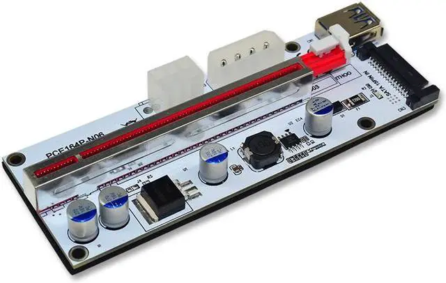 Molex 4pin, SATA and 6-pin PCI-E power interface Integrate on PCB, only one power input is needed, Please DO NOT try to plug 2 or 3 power interface simultaneously